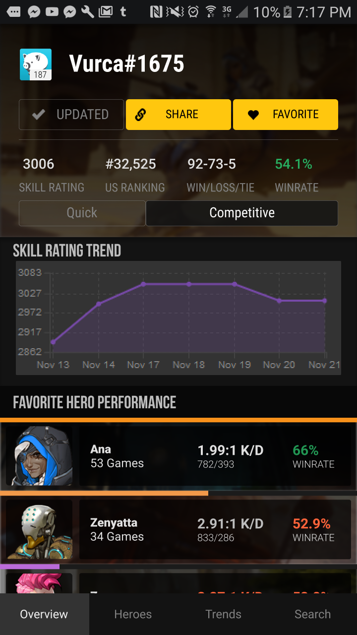 Master Overwatch is a site that presents organizes player statistics from the video game Overwatch. The link is tied to my account for quick reference.